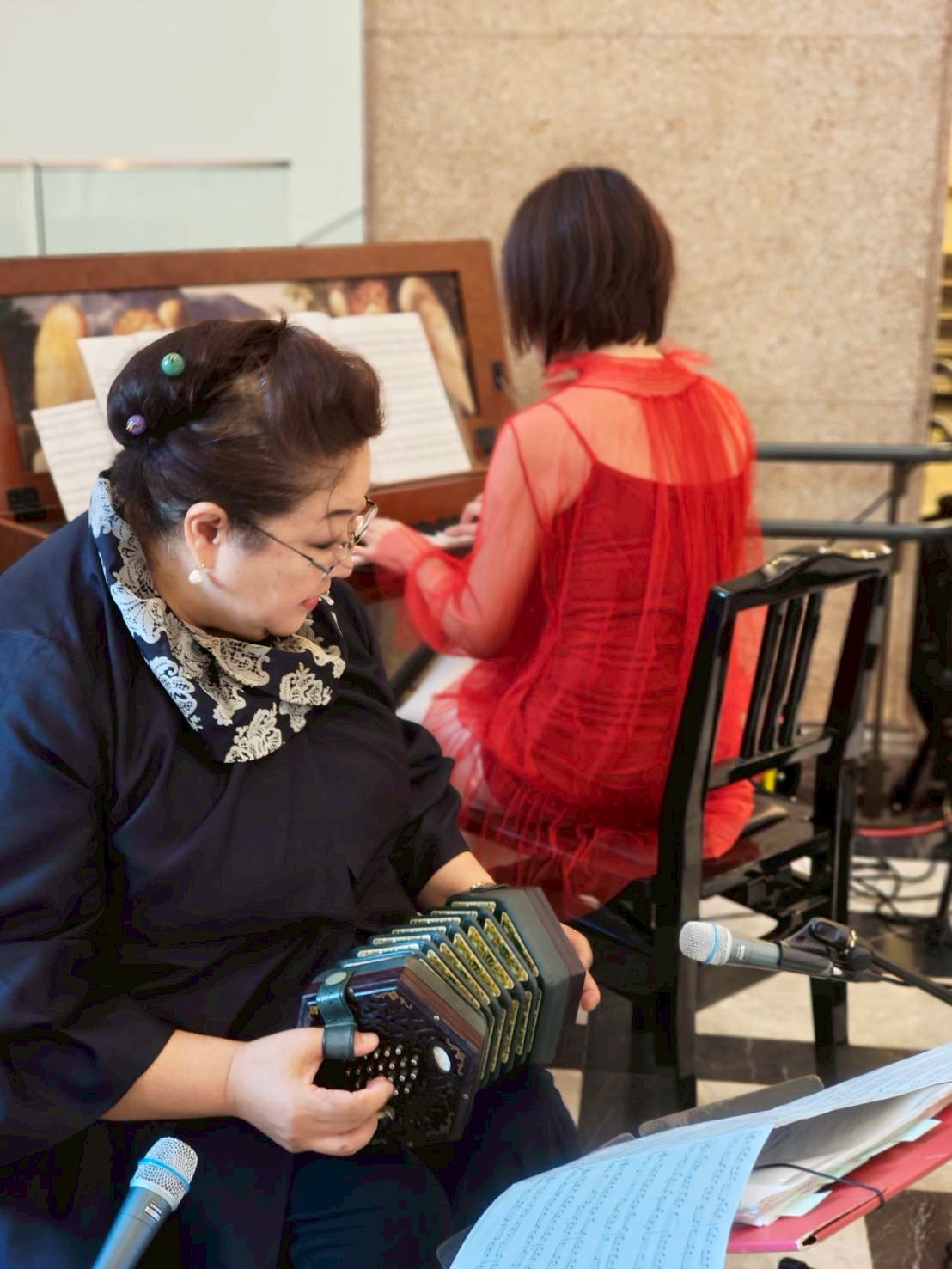 歴史館のスタッフの皆様、また港区内施設の皆様にて今回のコンサートを広くご紹介いただいたとのことで、イングリッシュコンサーティーナ、チェンバロ、それぞれにご興味やご縁のある方、今回の演奏曲に思い入れのある方、開場前からお声掛けいただくほどお集まりくださいました。熱気と期待の高まり・・私たちスタップも息苦しくなるほど。