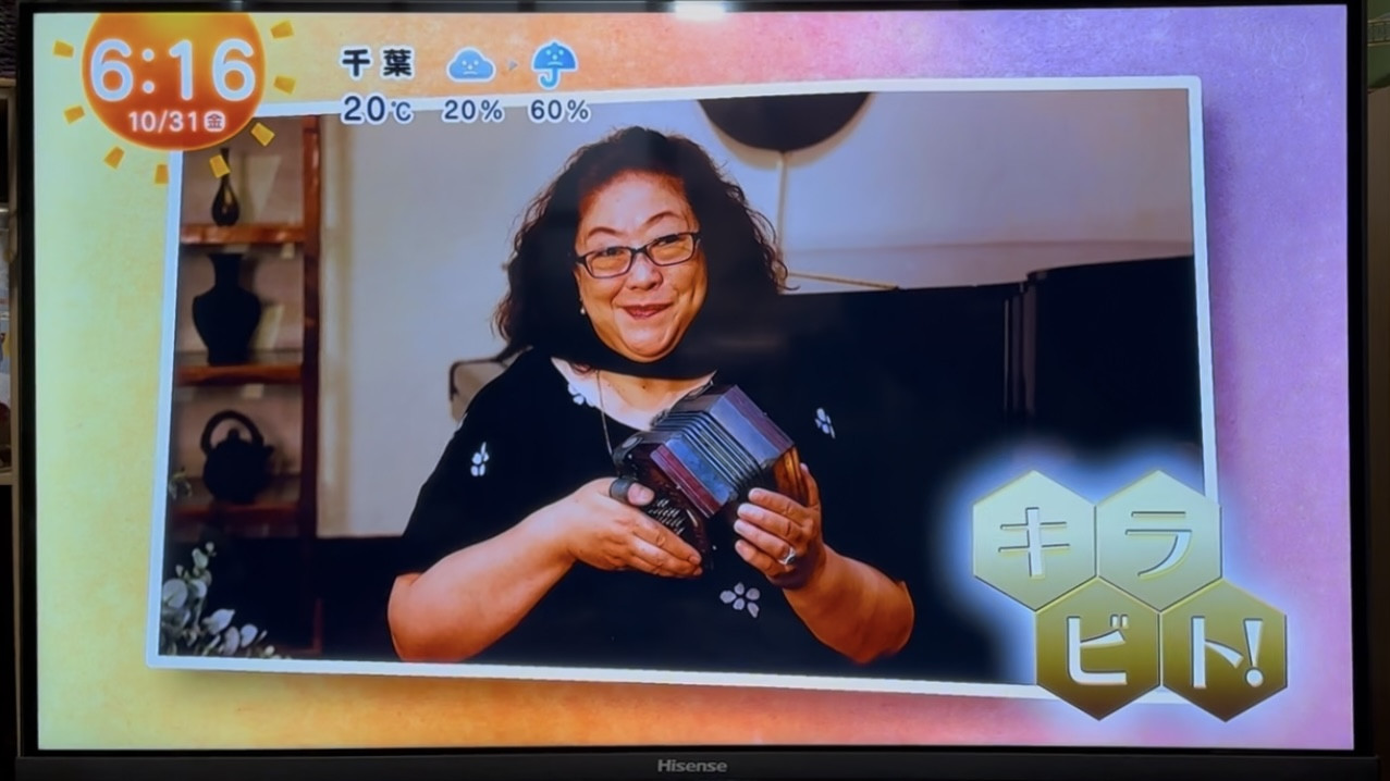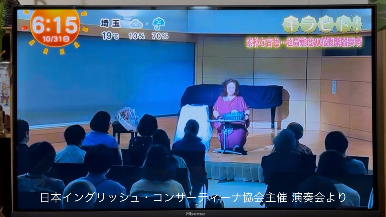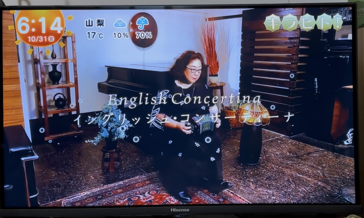 そして、手先の器用さが活かされるお仕事…というくだりから、イングリッシュ・コンサーティーナの演奏家として紹介されていきました。 当協会設立についての紹介もありました。