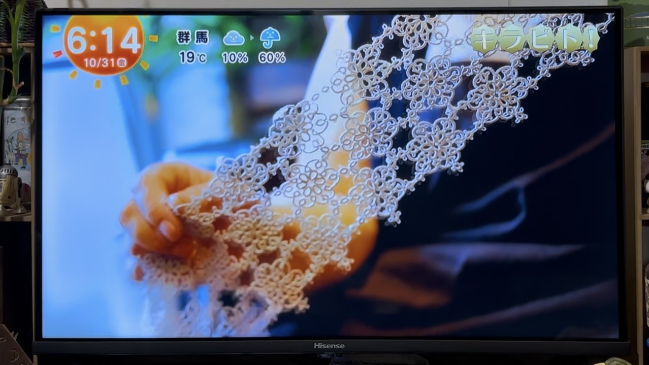 コーナーの最初には演奏家の別の顔、こちらもまたプロ級の腕前のレース編みをする姿が。